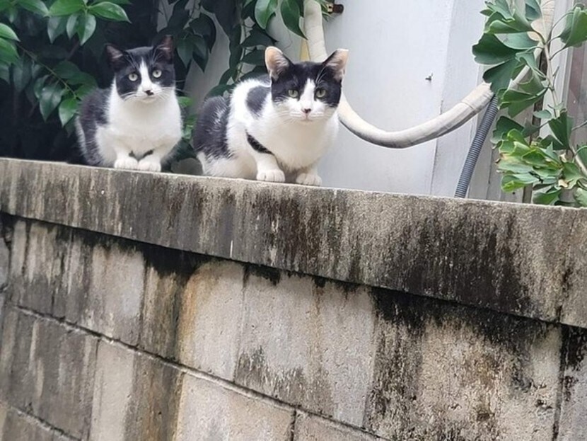 고냥이=담벼락 위