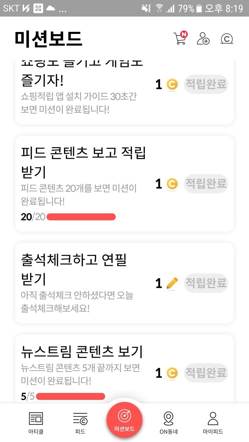 오늘의 미션보드네요