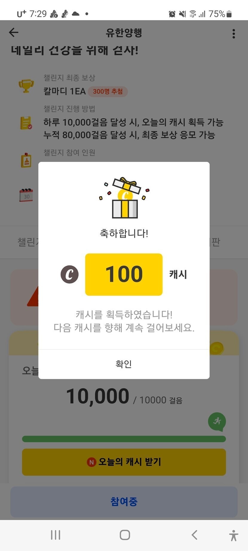 100캐쉬 획득
