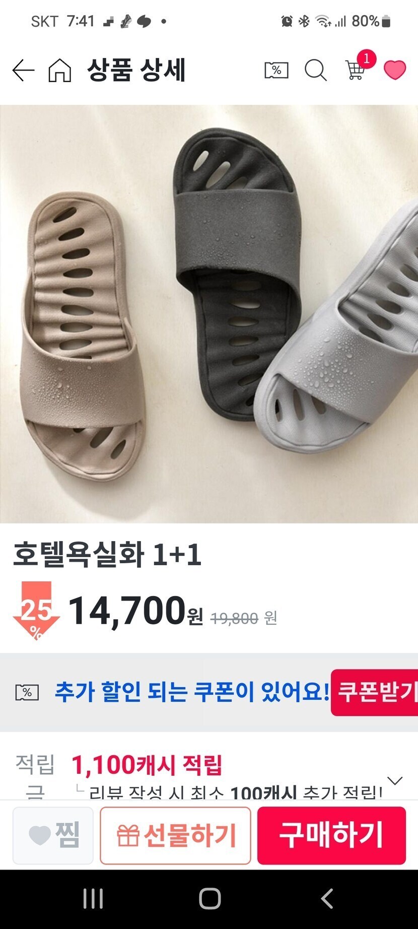 욕실화 1+1 샀어요