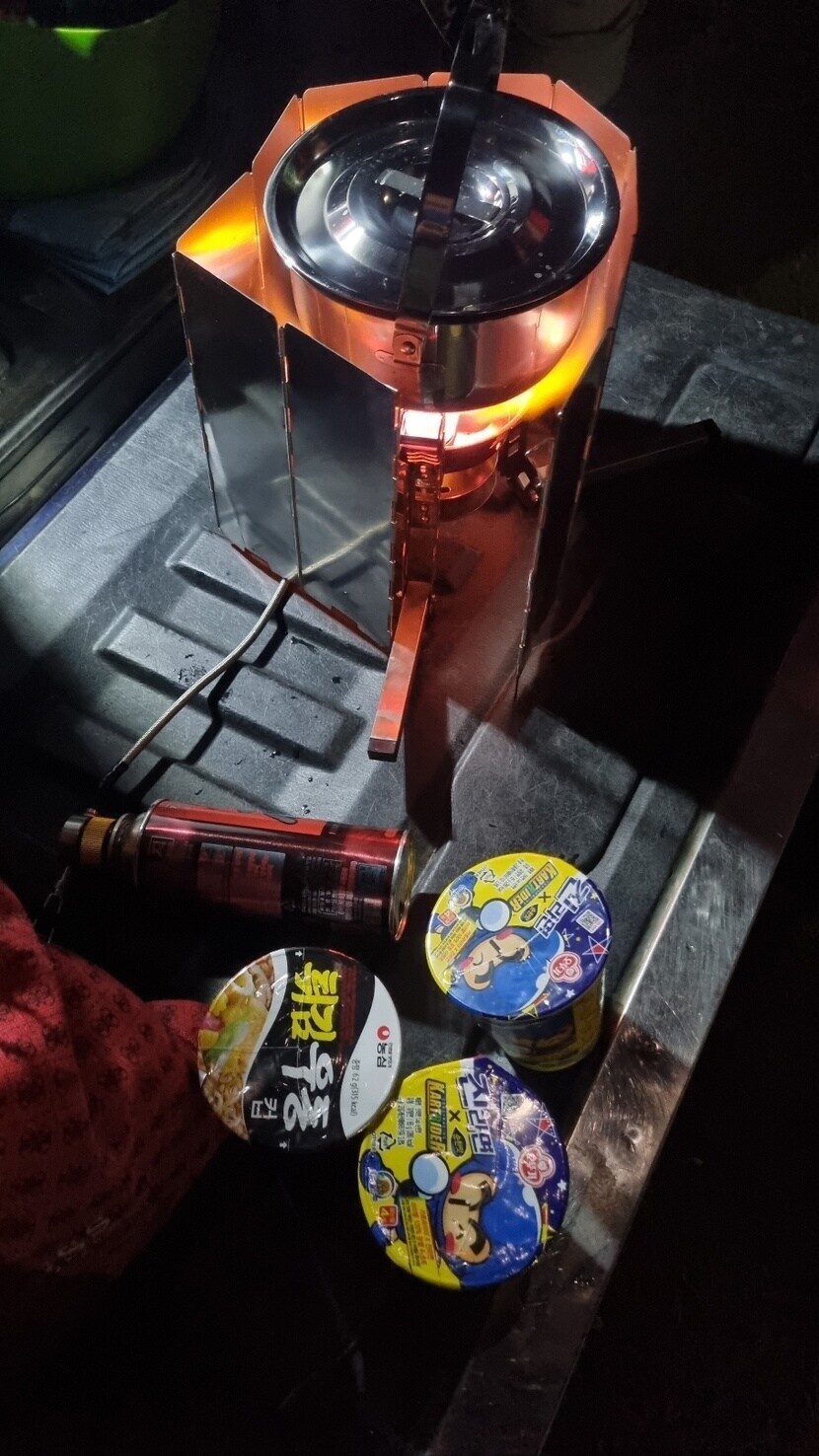 새벽에 바닷가 앞에서 라면먹었어요