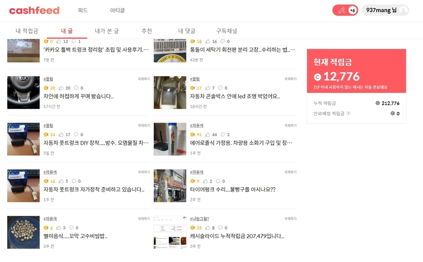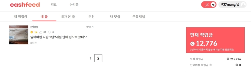 캐시슬라이드 누적적립금 212,776원..현재적립금 12,776입니다..그리고 캐시피드에 올린 글 소개합니다...