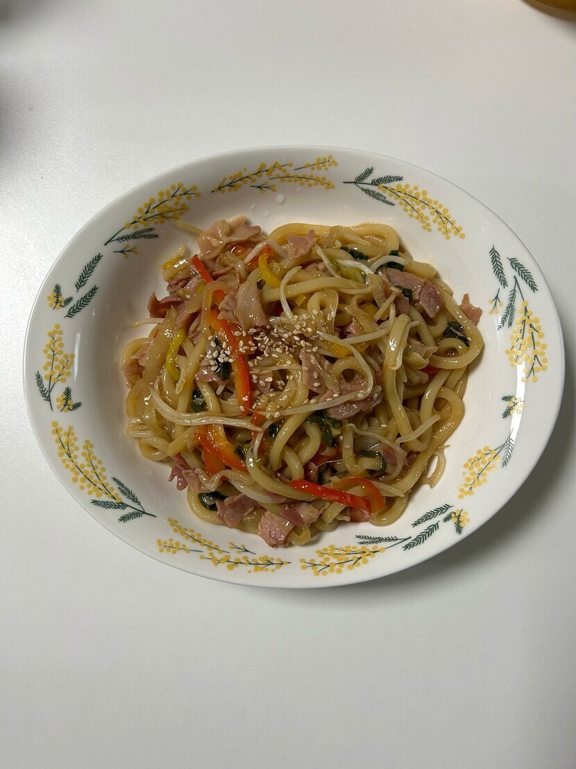오늘의 저녁메뉴_숙주베이컨볶음우동