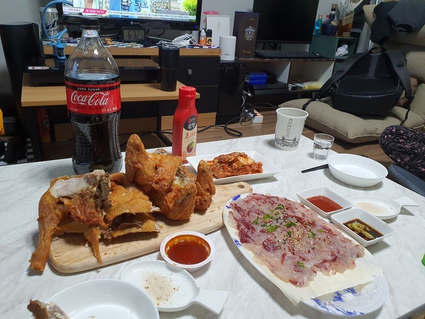 20.03.19 224 읽음 숭어회 & 가마치통닭 사천바보 구독하기 0 5 콘텐츠의 수익 34 오늘 퇴근하고 직장동료집에서 단둘이 숭어회와 가마치두마라통닭울 먹었어요..(솔직히 가마치통닭이 교촌치킨보단 별루..ㅎㅎ)..초장과 와사비에 숭어회를 찍어서 먹은 그 느낌..최고였어요..👍👍..다음에는 무슨 회를 먹어볼까나..직장동료가 개불어떠냐고 했는데 저는 개불 씹는 그 느낌을 매우 싫어해서..ㅎㅎㅎ 5 0 / 300 입력
