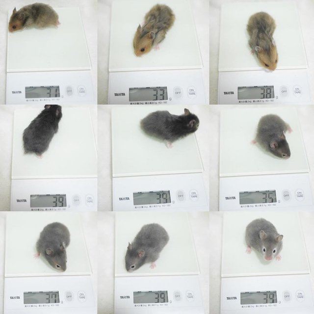 태어난지 20일된 햄스터들 몸무게