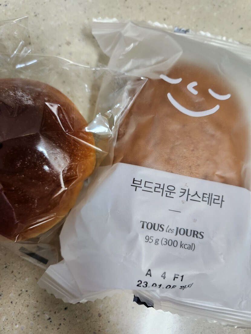 아침으로 빵 2개~~~