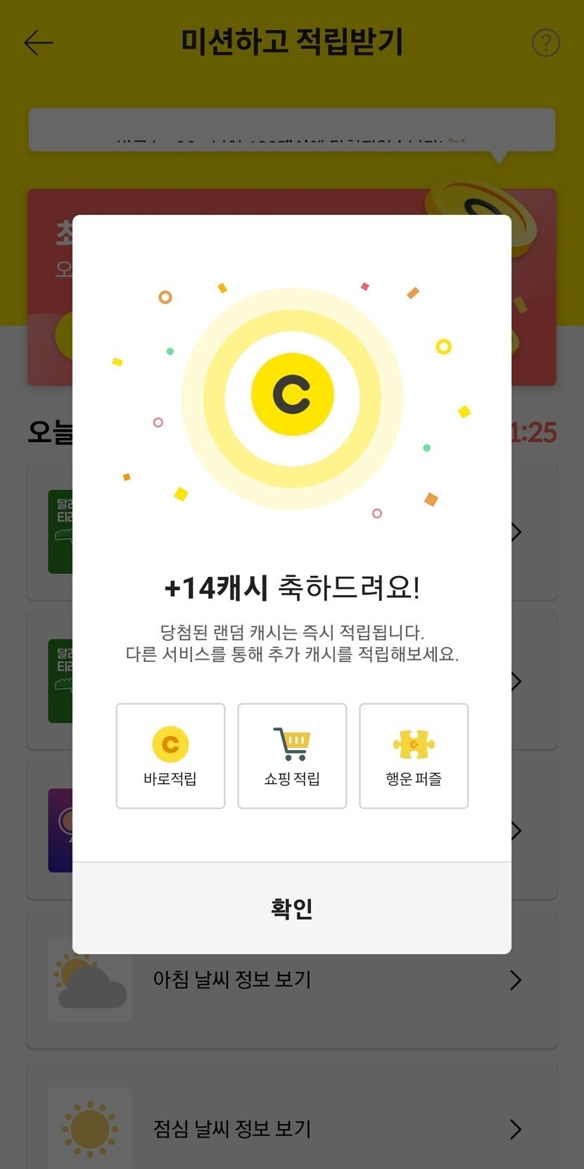 오늘의 랜덤 캐쉬