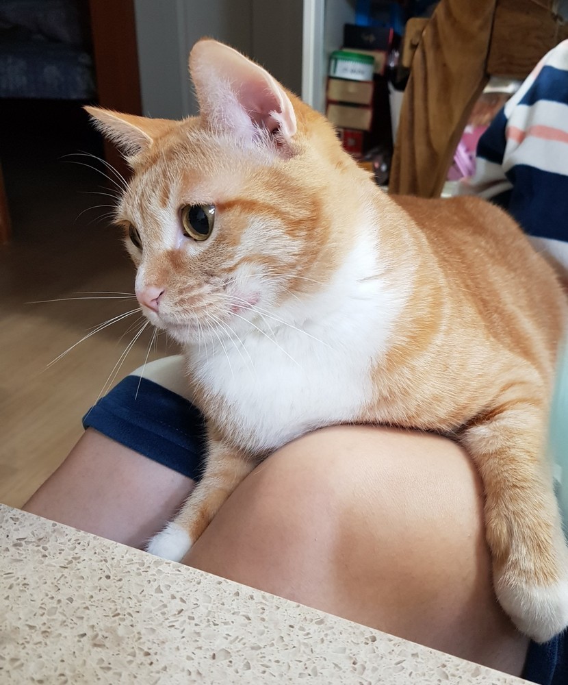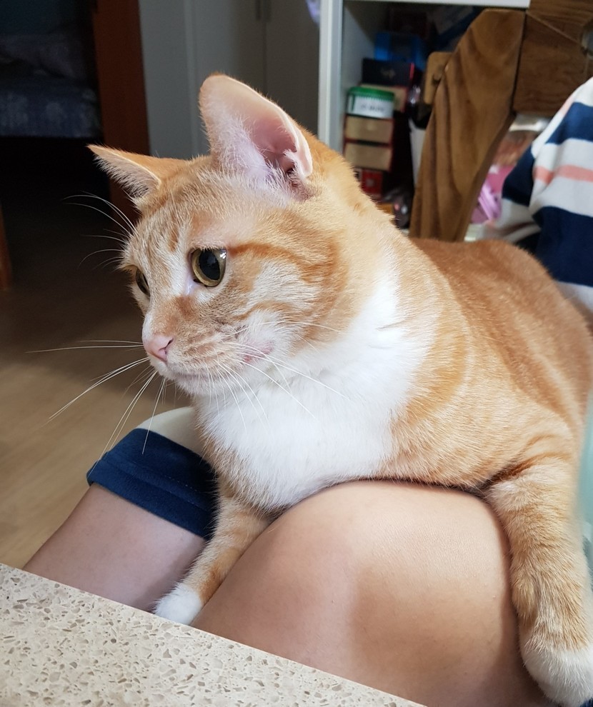 집사 다리에 앉아있는 냥이~🤗🤗🤗