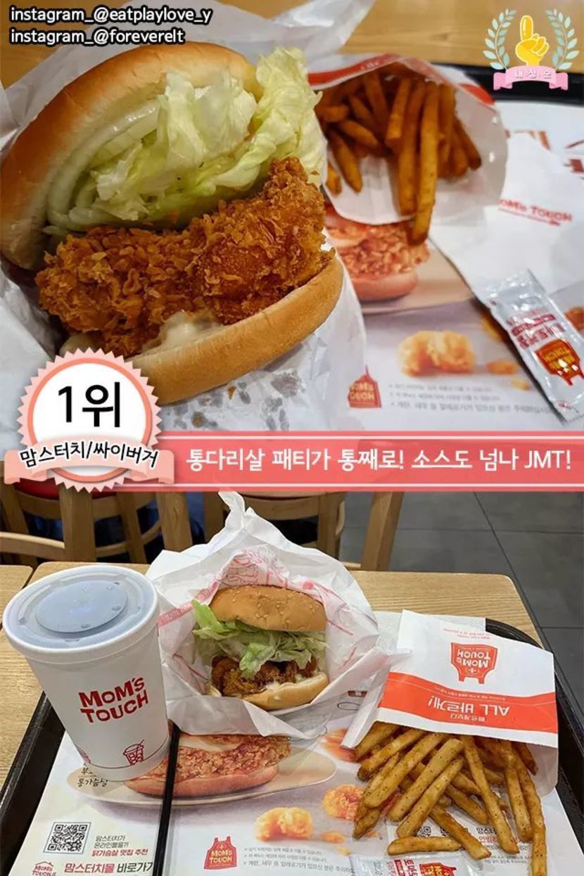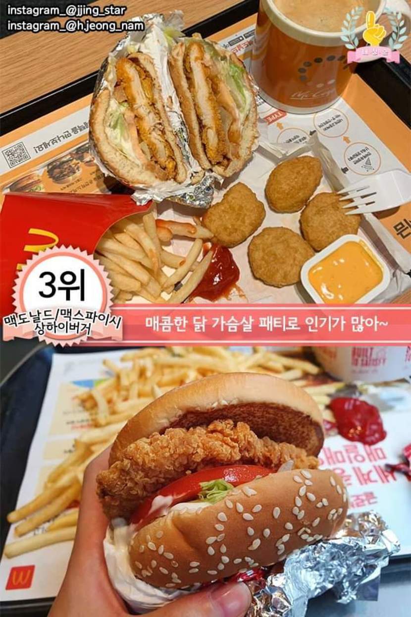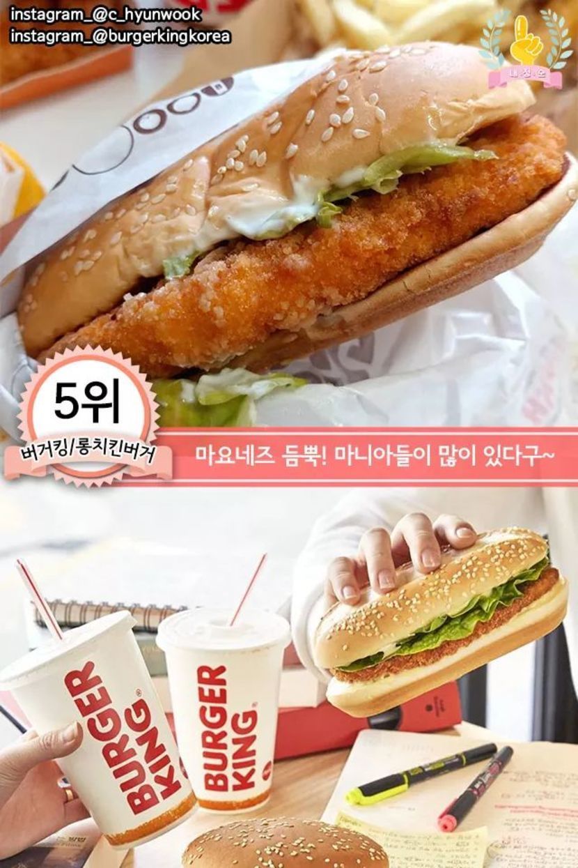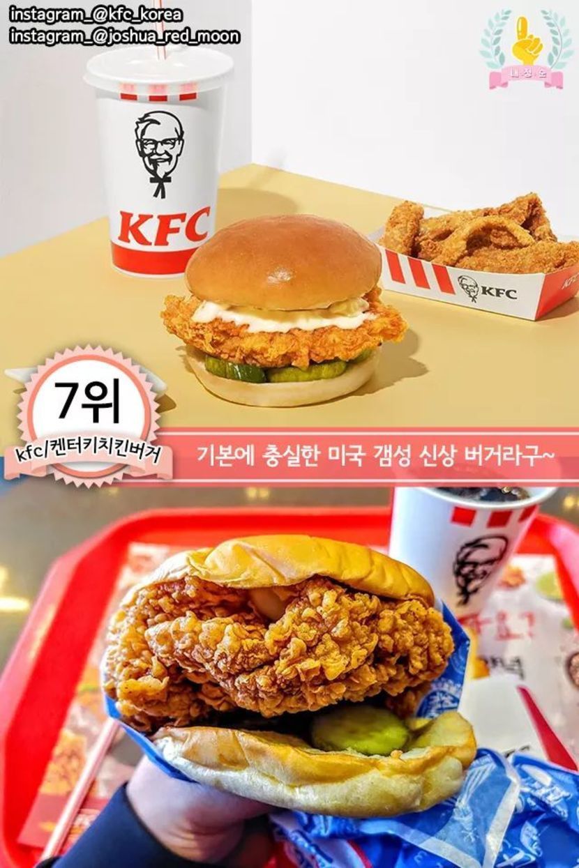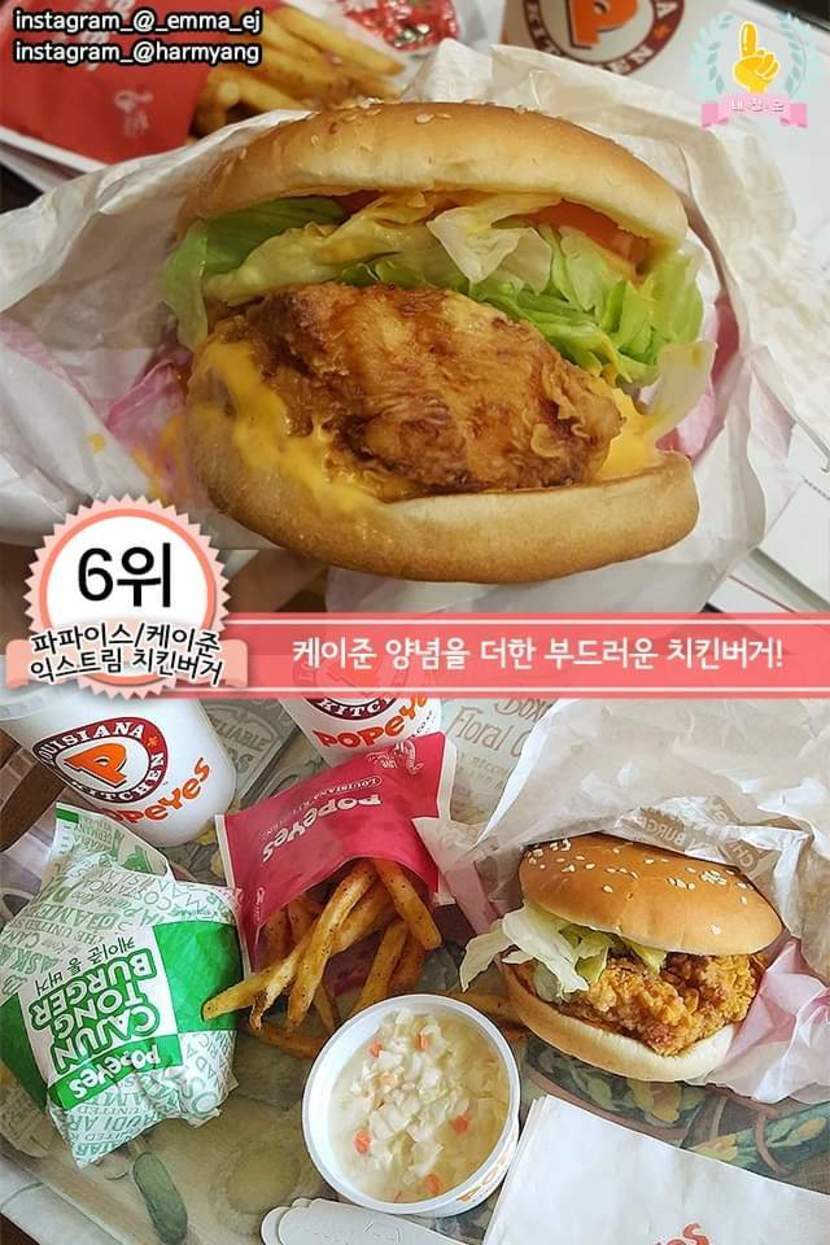 각 프랜차이즈 치킨버거 추천메뉴 best7