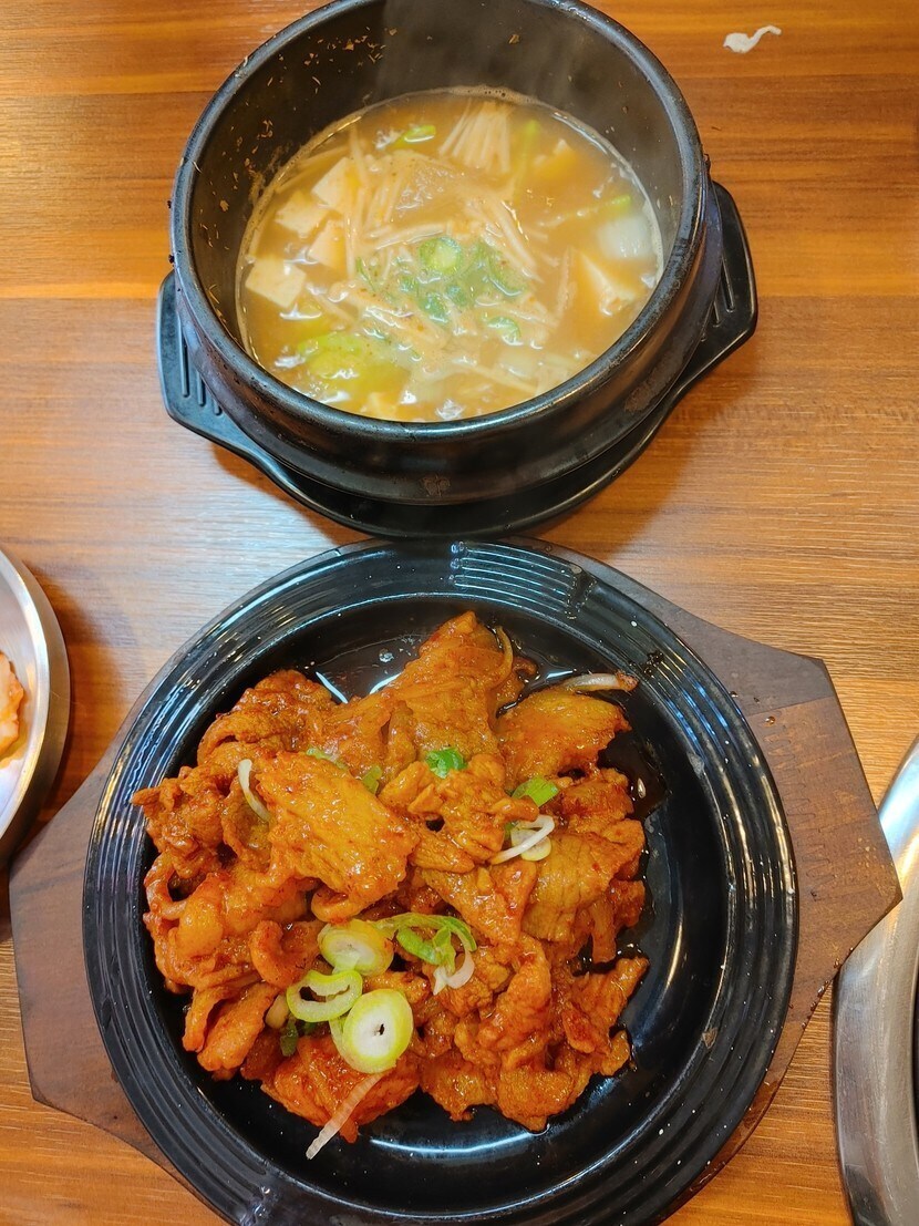 23.01.19 120 읽음 점심특선❤️ park42102003 구독하기 19 19 콘텐츠의 수익 2 저~~~~~번에...단골 고깃집에서 먹은 점심특선제육볶음 순두부찌개제육볶음 시키면 된장은 써비스로 조금 나오는거라네요~맛있네요~ 19 0 / 300 입력