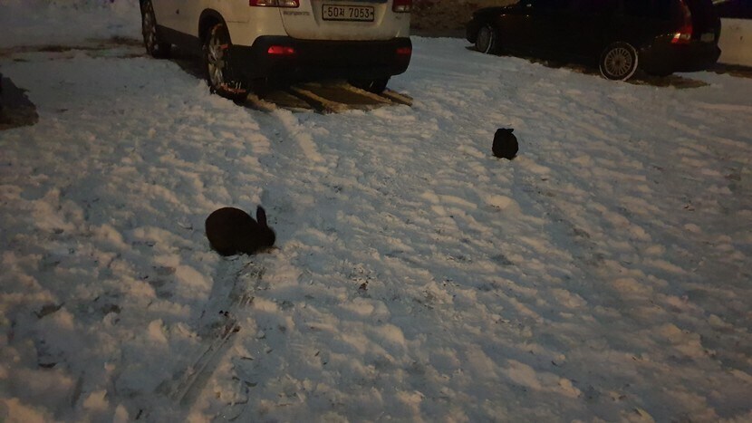 겨울캠핑장에 산토끼 등장