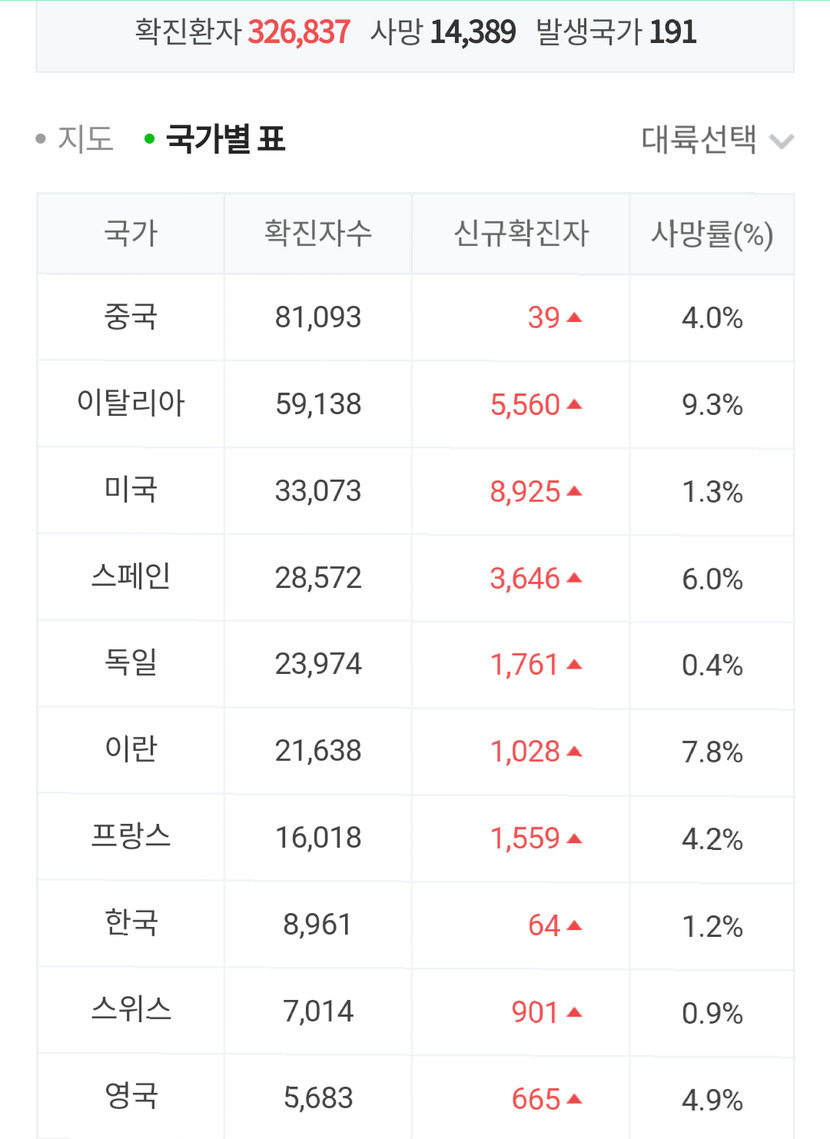 20.03.23 178 읽음 코로나바이러스 (우한폐렴) 현황입니다😢 Dorapaeng 도라팽 구독하기 1 9 콘텐츠의 수익 25 확진 검사진행 완치 사망지역별 확진자 현황세계 확진자 top 10 국가 9 0 / 300 입력