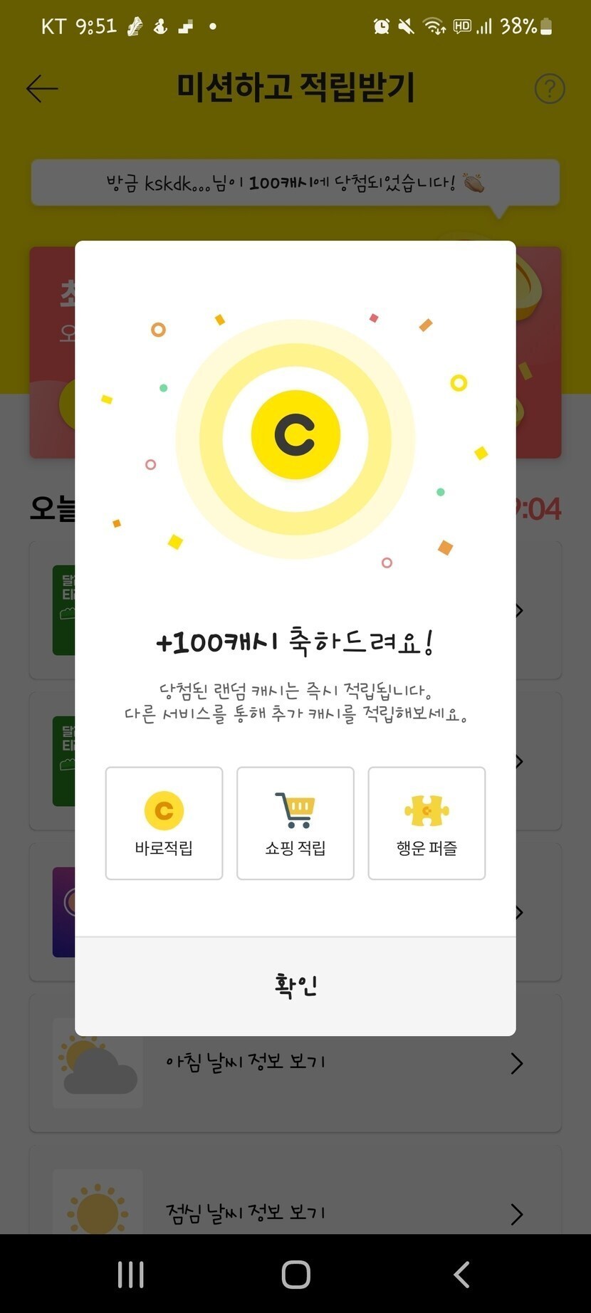100캐시 당첨^^