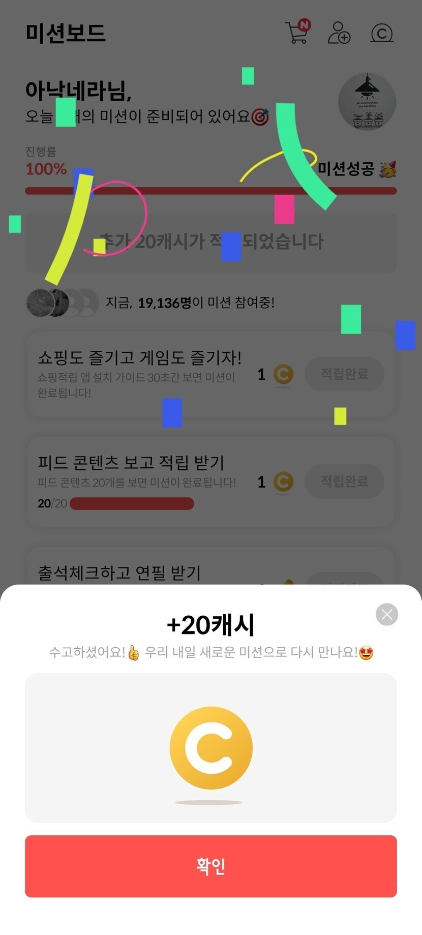 간만에 20캐시