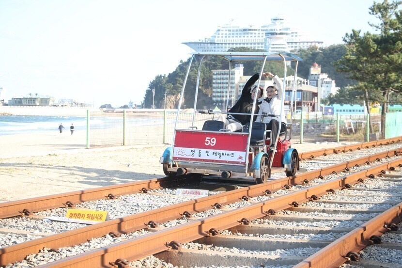정동진에바이클을타보니재미있었어요