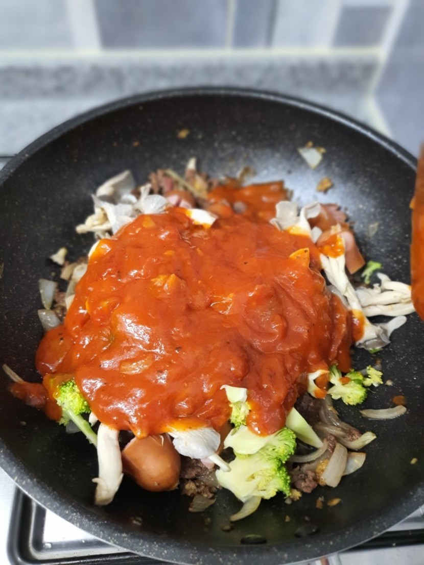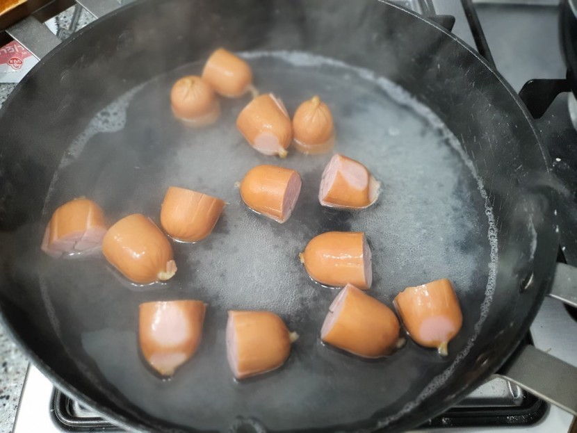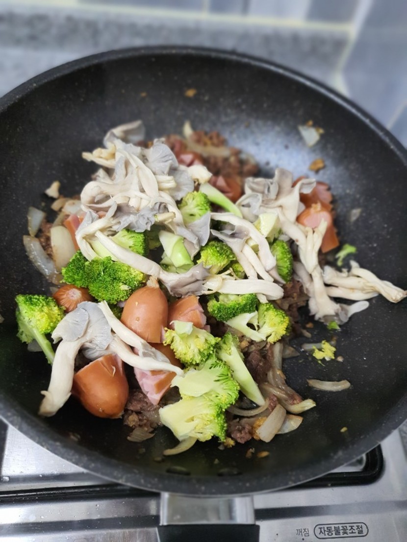 소시지.브로콜리.버섯 데쳐 줍니다 (꼼수 ㅎㅎ)