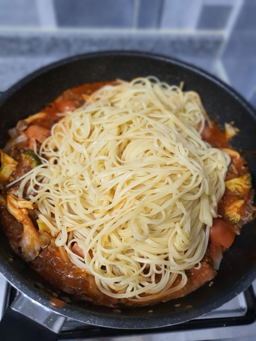 스파게티 면 삶아 주시구요~