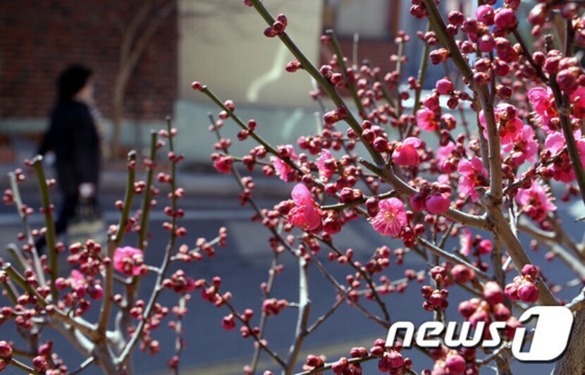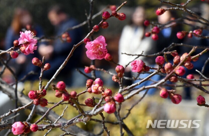 꽃망울 터트린 홍매화