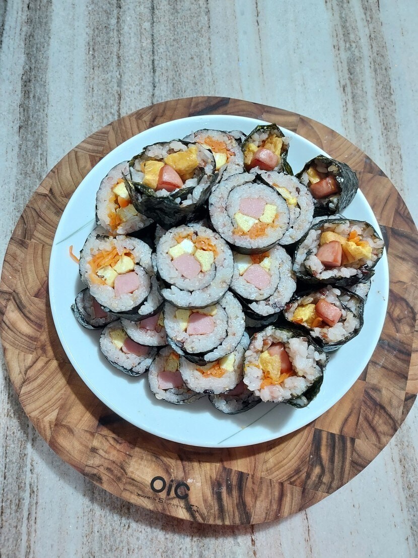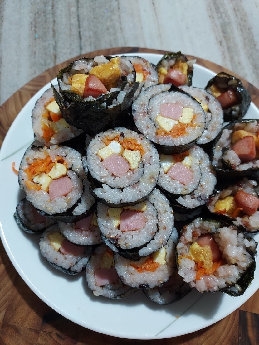 저녁은 스팸김밥으로~ 밥량 실패ㅜ