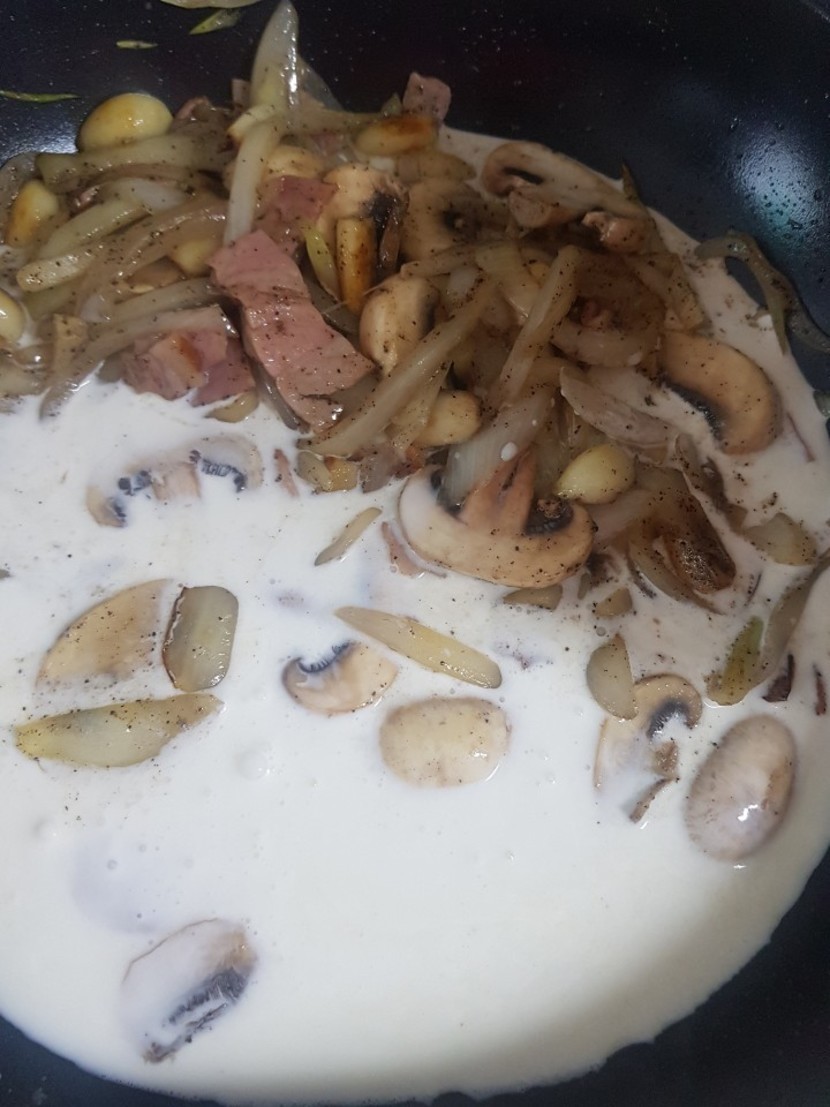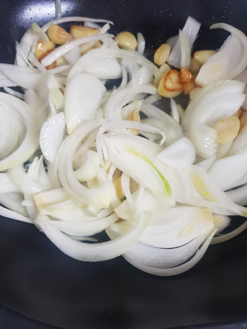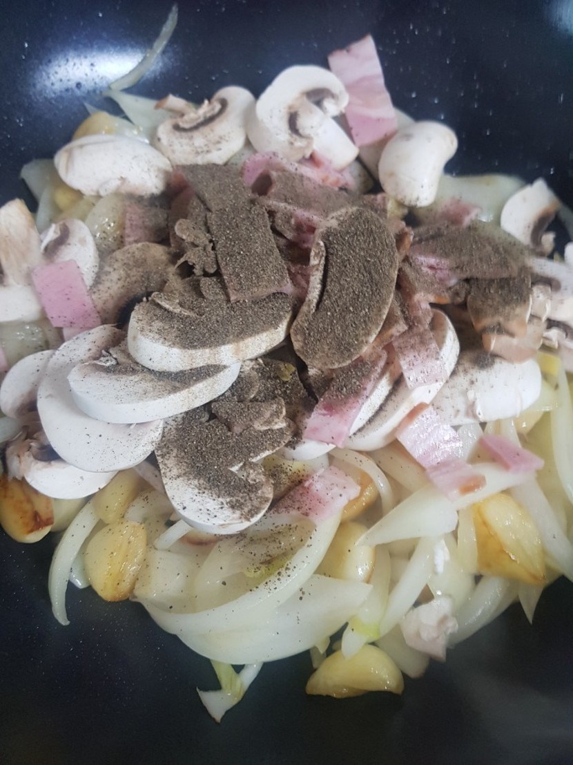 양파 자른거 넣고 익혀주다가 베이컨버섯까지
