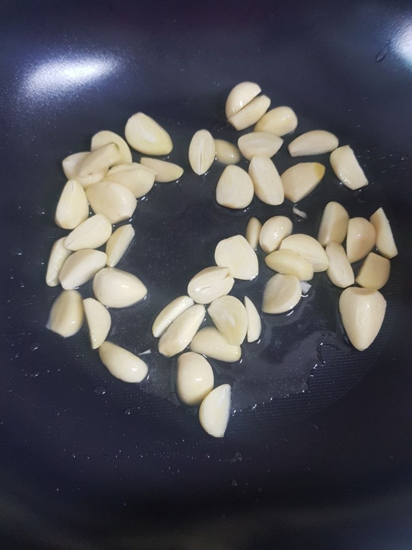 반 자른 마늘을 거의 익힌후에