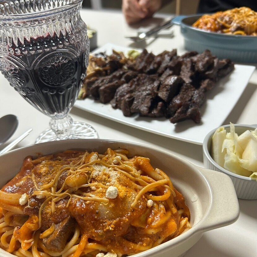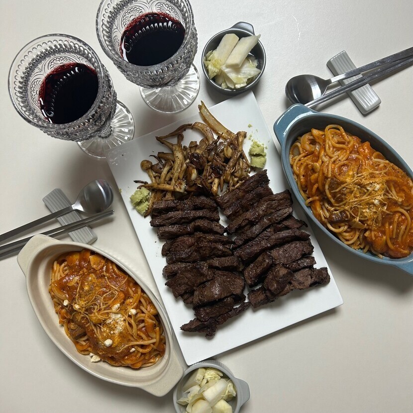 23.03.09 118 읽음 부채살 스테이크와 스파게티 와인 준뜨(답방,구독) 구독하기 8 10 콘텐츠의 수익 2 퇴근길에 이마트에서 부채살 사다가 굽고. 스파게티집에있던 달달한 레드와인 한잔도수가 19.5라 먹다보니 취기가올라왔다스테이크도 스파게티도 맛났다 10 0 / 300 입력