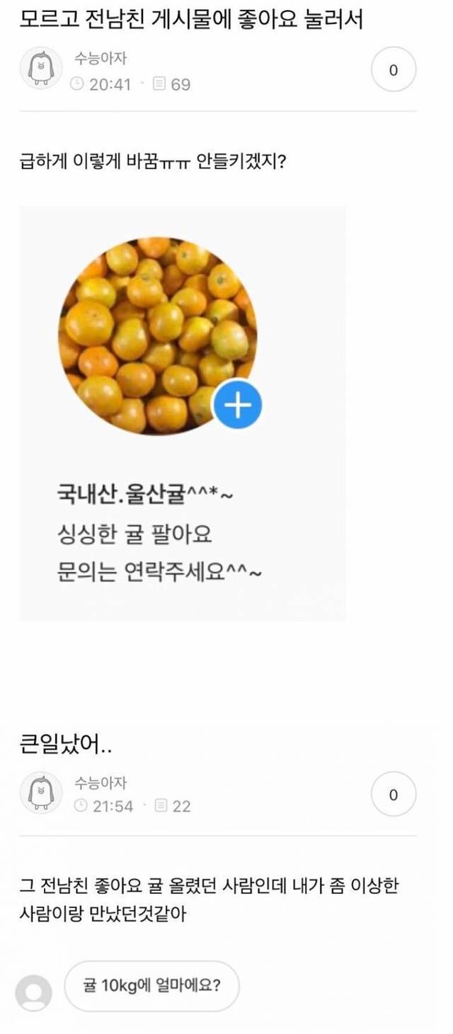 전남친 게시글 좋아요 누름