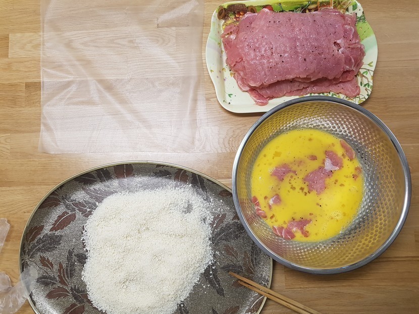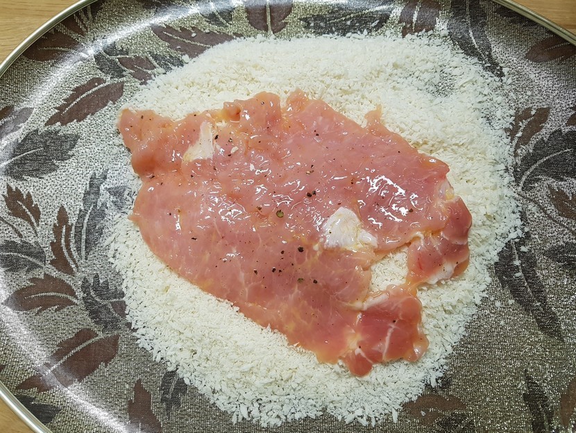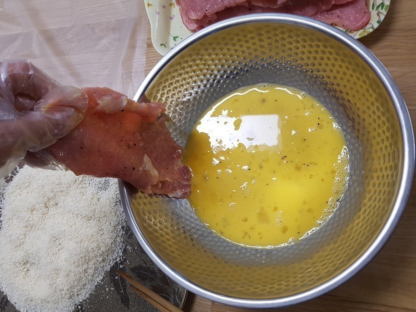 3. κ³λ 4κ°λ₯Ό 미리 νμ΄λκ³ , κ³ κΈ°λ₯Ό μ μ ν λΉ΅κ°λ£¨λ₯Ό μΆ©λΆν μλ©΄λ€ λ¬»νλ€.