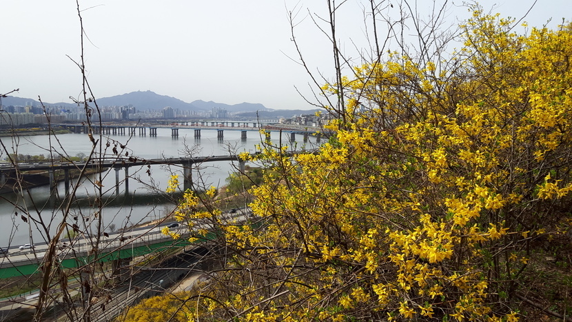 다리를 건너서 바라 본 응봉산의 풍경입니다