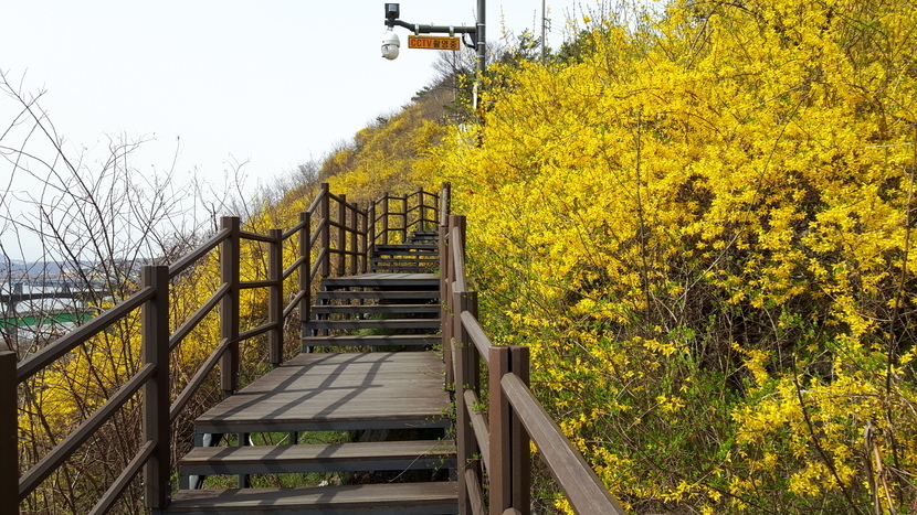 산 전체가 개나리로 덮여 있어서 올라가는 길이 환상입니다