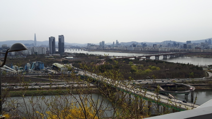 산아래로 한강이 내려다보이고 오늘은 날씨도 좋고 경치도 좋군요