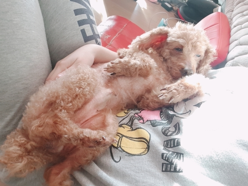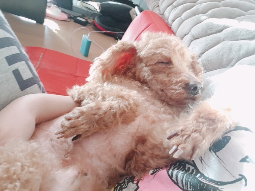 누너품에서 자는 호듕이