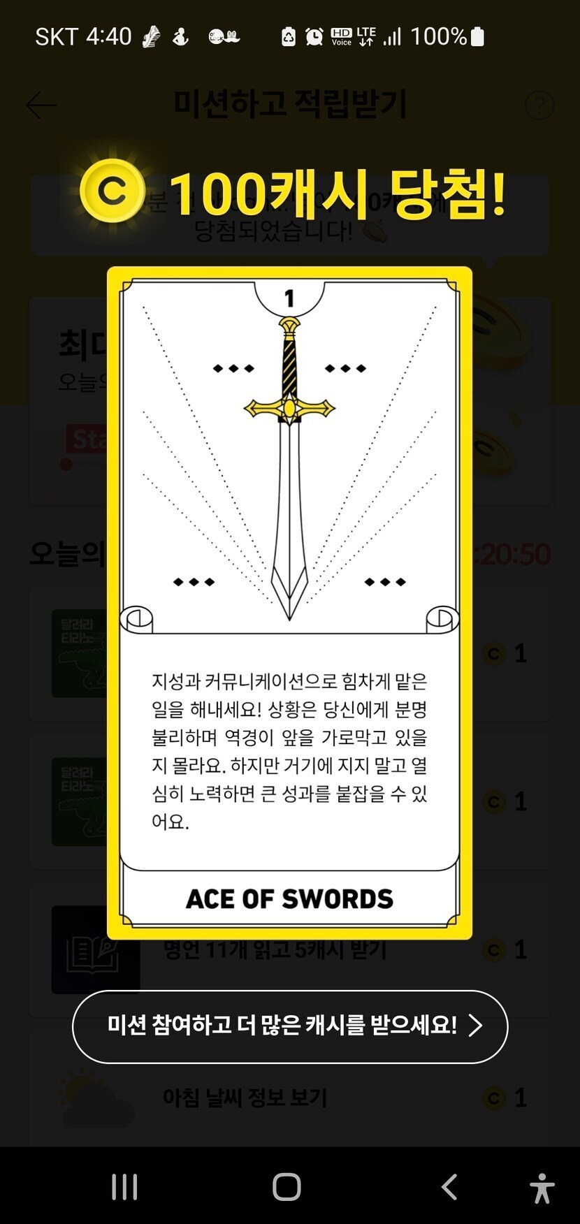100 캐시 받았어요^^