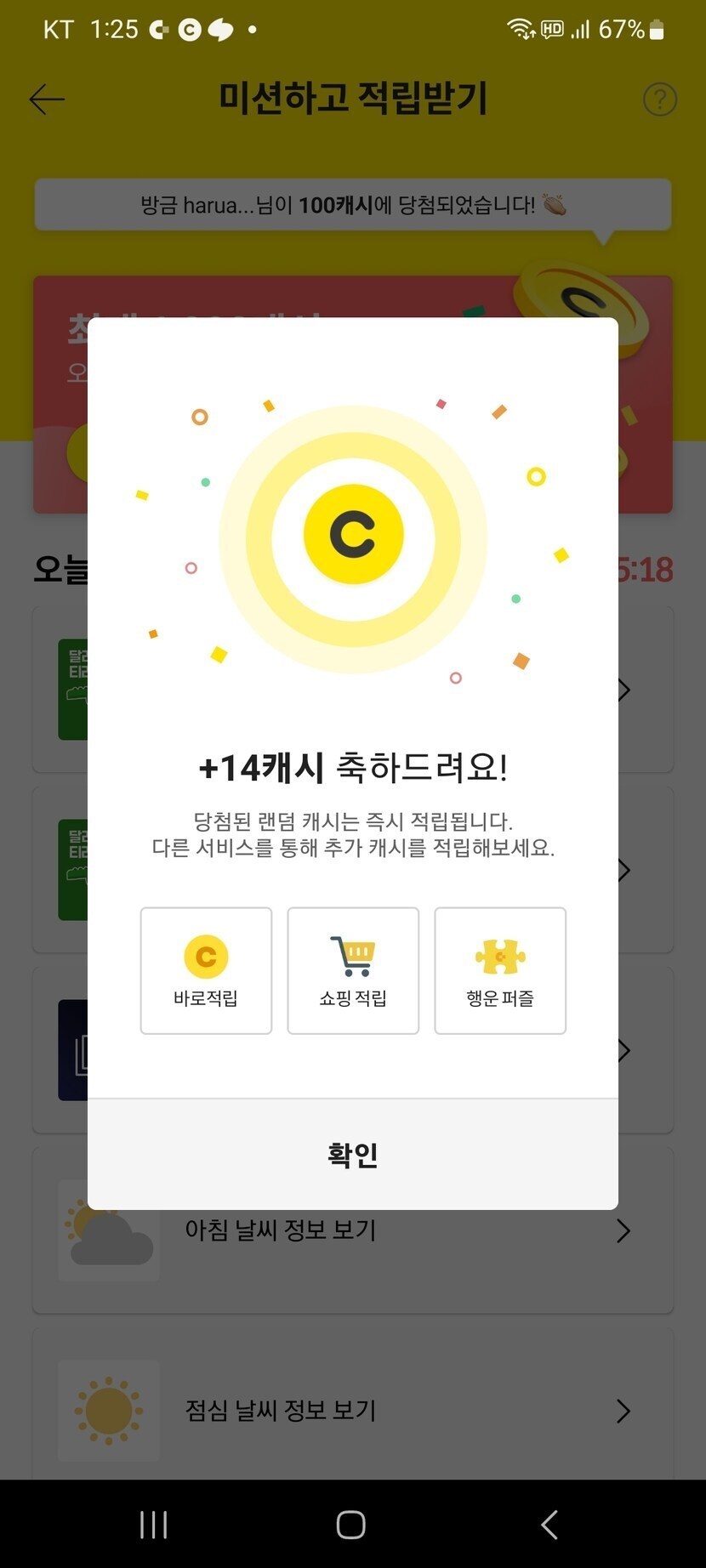 미션하고적립하기 완료