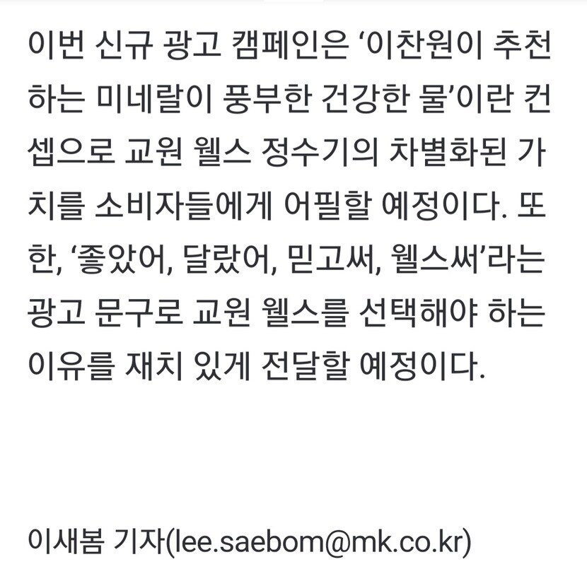 '교원 웰스' 모델 이찬원