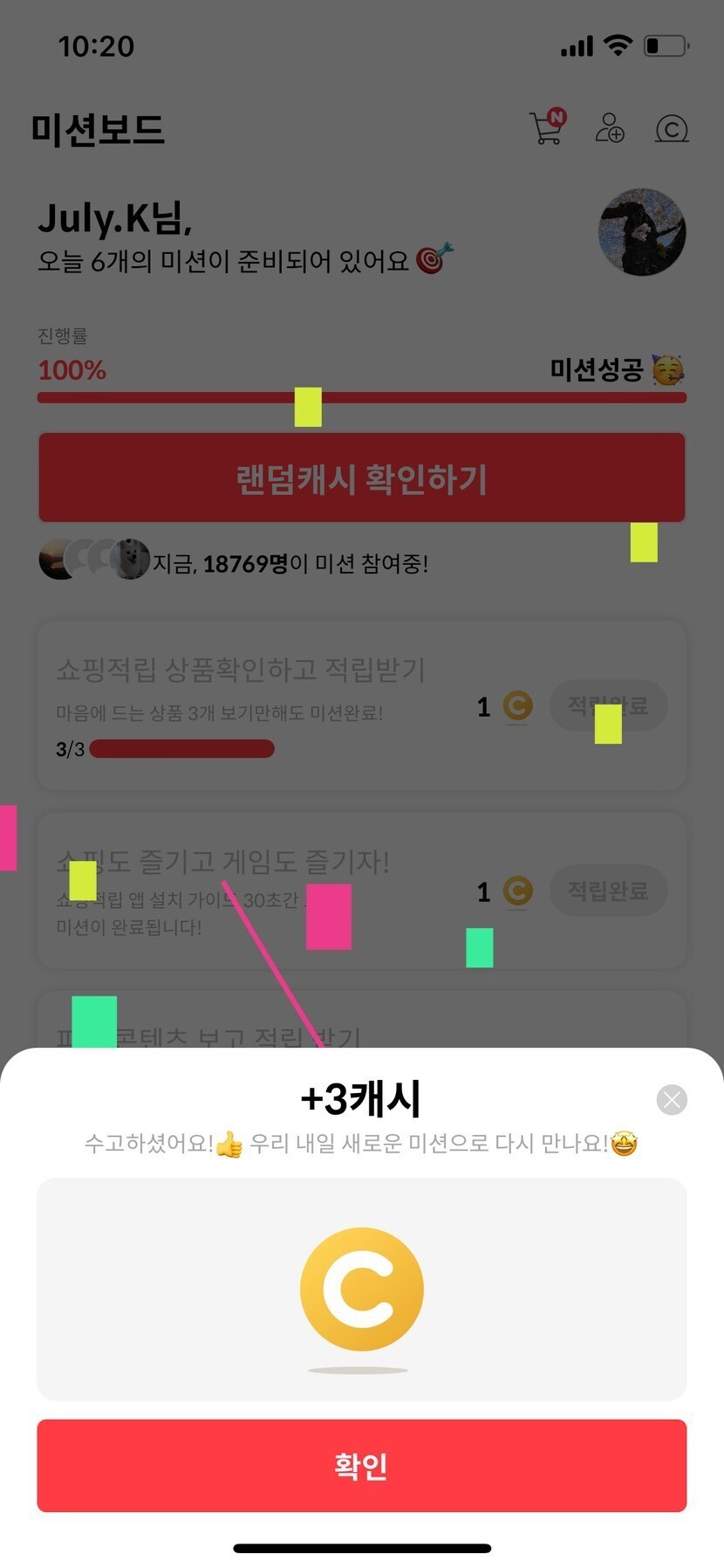 오늘도 미션완료했어요👍🏻 3캐시지만…