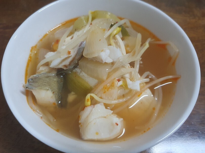 저녁으로 동태국과 고사리나물무침과 오이무침으로 먹었습니다~~