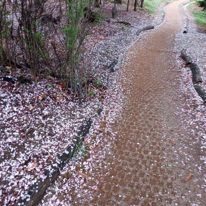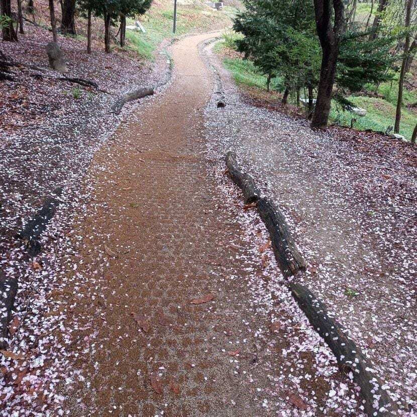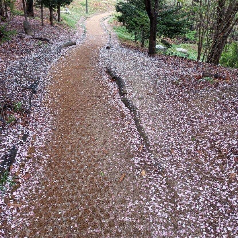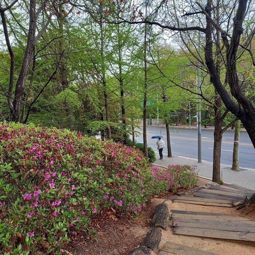 역사적인 길이지만, '공동묘지'라는 생각에 조금 걷기 무섭기도, 때론 꺼려지기도 할, 이 길에도 이렇게 분홍빛 꽃비가 하냥없이 내려 아름답게 빛나고 있습니다.