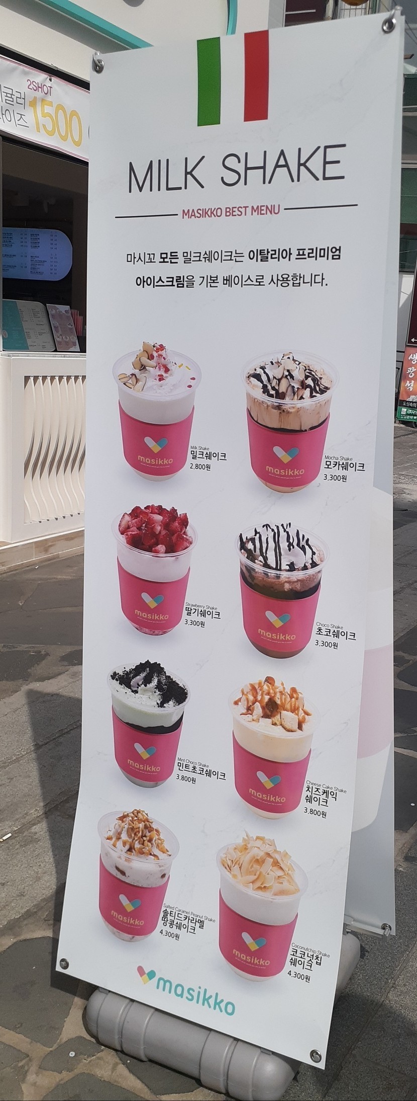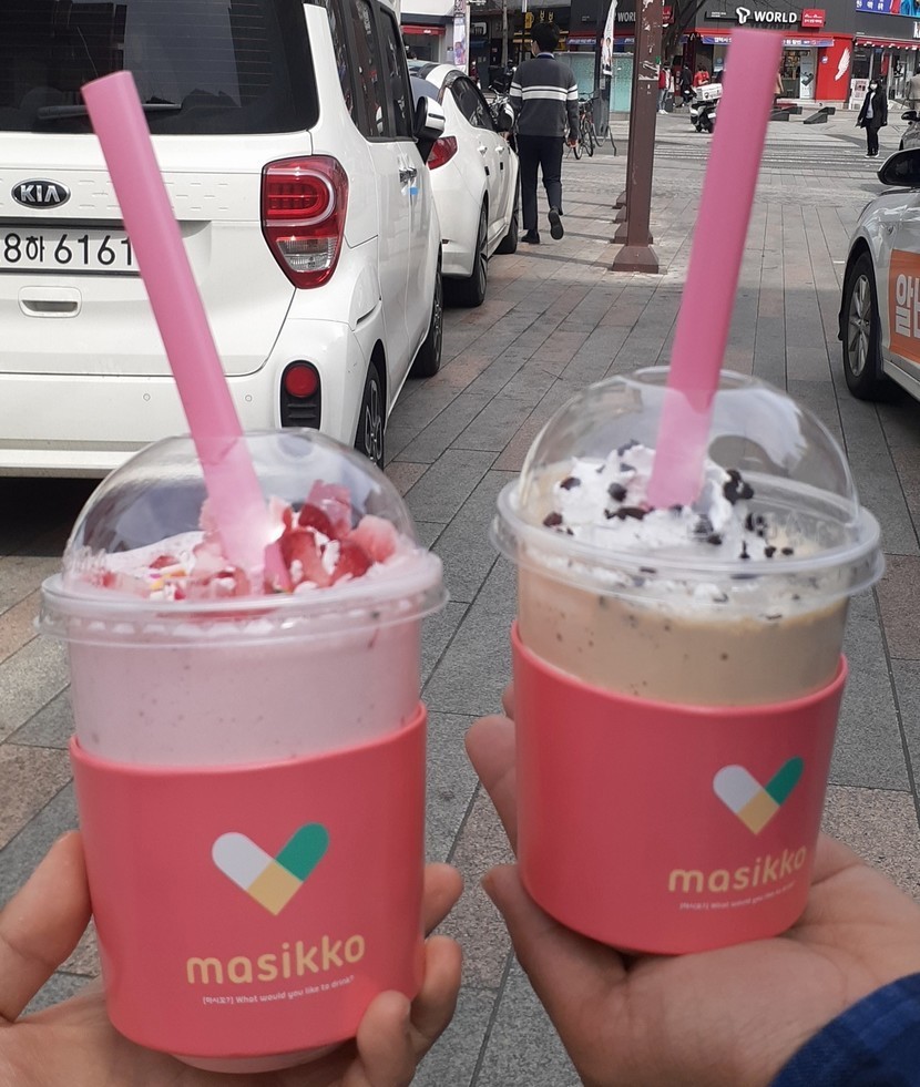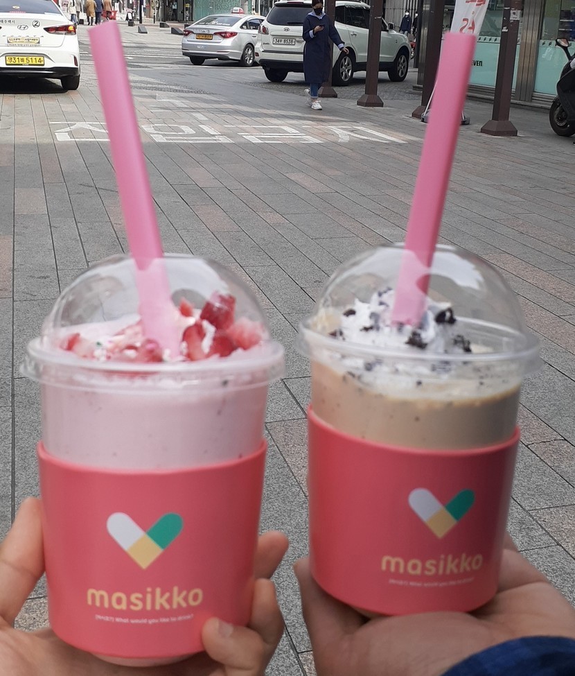 20.03.31 270 읽음 masikko 쉐이크 리티아♡♤♧◇ 구독하기 1 14 콘텐츠의 수익 40 masikko 밀크 쉐이크 입간판을 보고 쉐이크를 먹어 봤어요~메뉴판이에요~밀크 쉐이크 메뉴판과 하트 빨대~음료 모형들~그림과는 좀 달랐지만 비주얼 예쁜 음료 모습에오빠와 같이 찍은 사진~ ㅎㅎ오빠가 먹은 모카 쉐이크~제가 먹은 딸기 쉐이크~음료도 예뻤지만 빨대 모양이 하트 모양이라 더 예뻤어요~♡♤♧◇맛도 있었어요~ 14 0 / 300 입력
