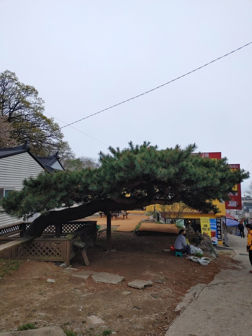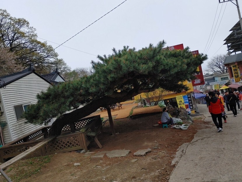 보문사 입구에 누워있는소나무💚