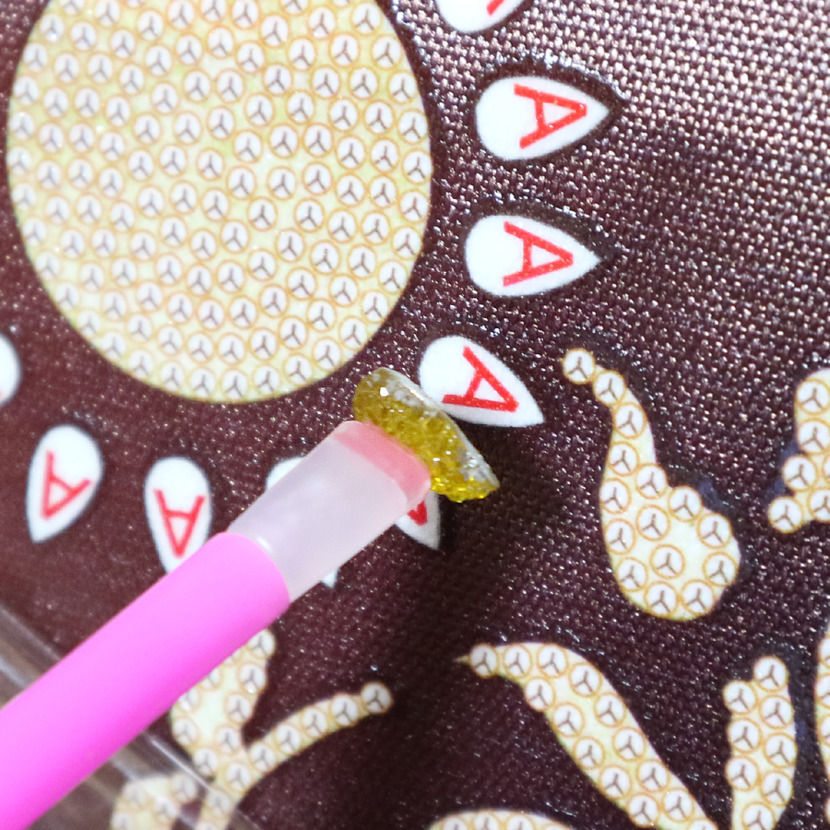 고체풀을 홈에 넣고 비즈를 콕 찍어 붙혀주고