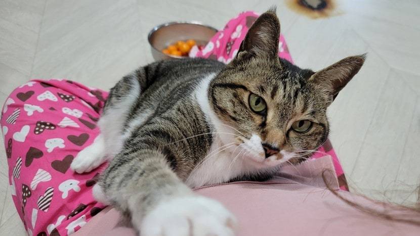 그래서 아예 무릎에 올라와있거거나