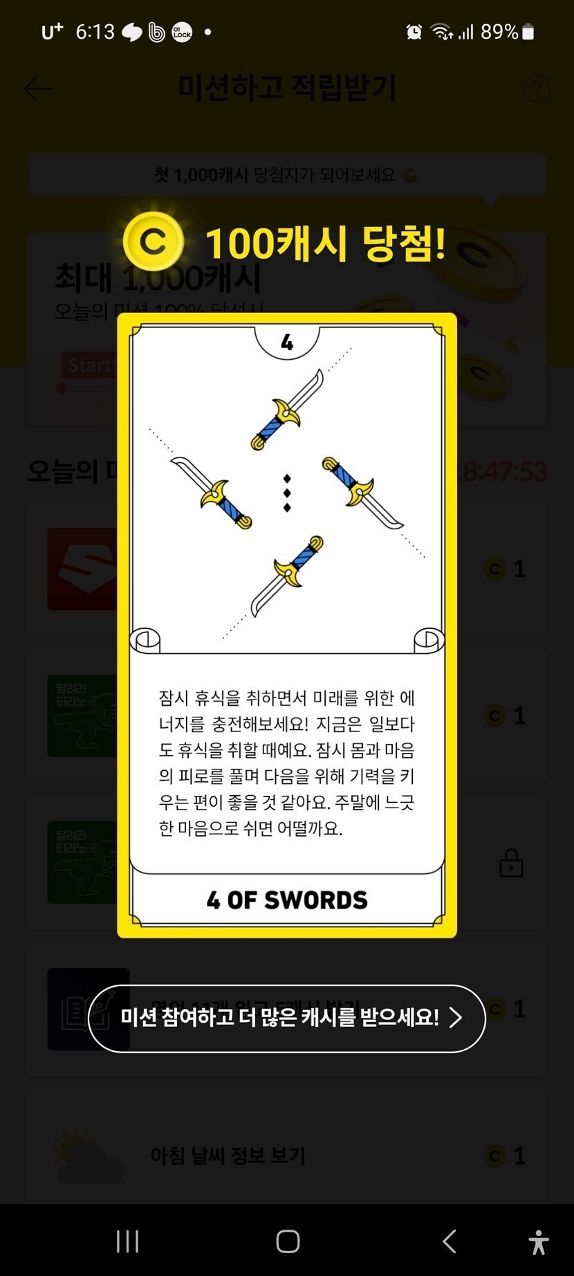 100캐쉬 당첨