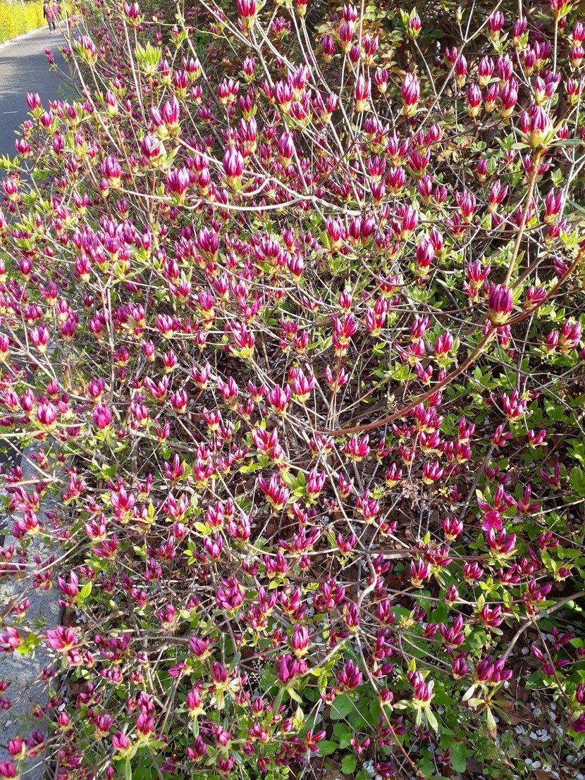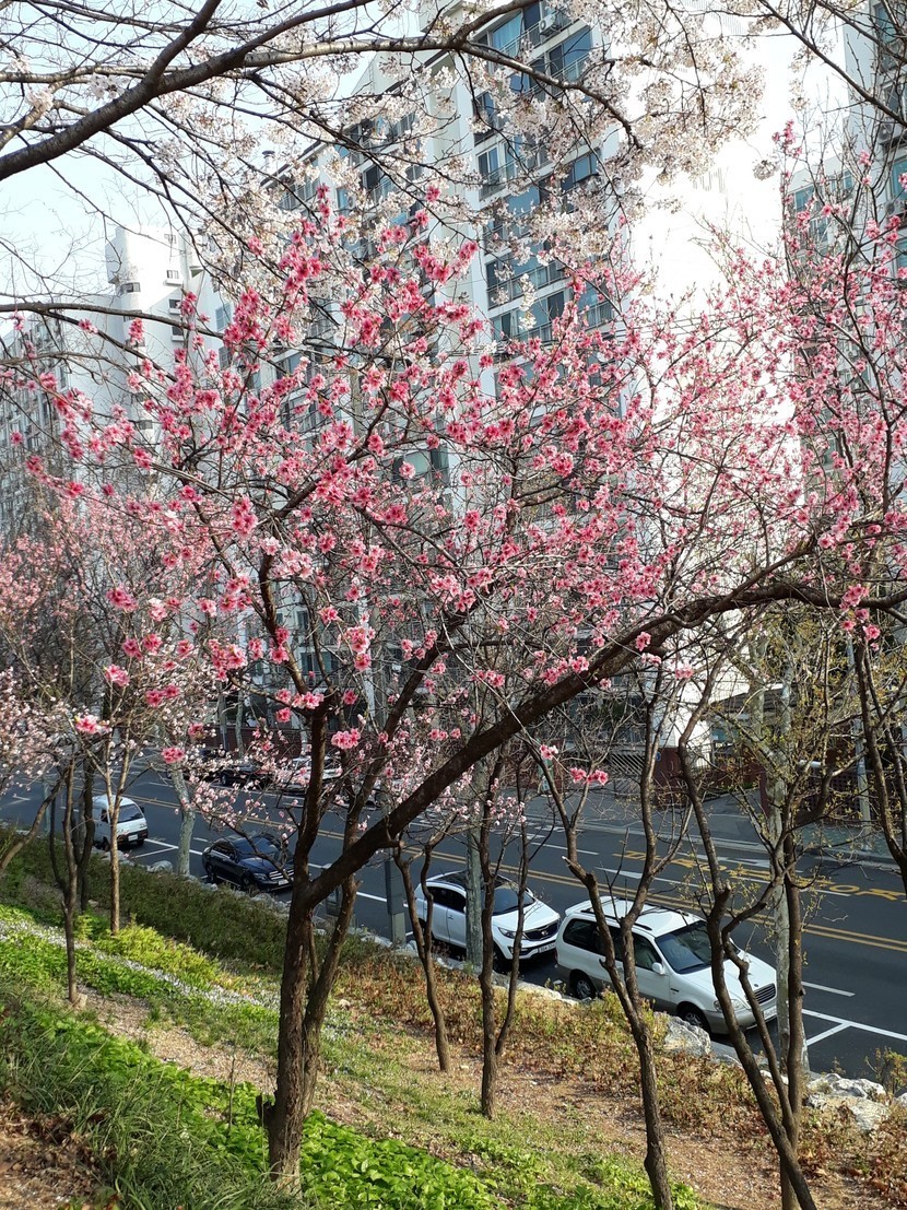 이름몰르는 나무와 복사꽃 철쭉 싸리나무꽃