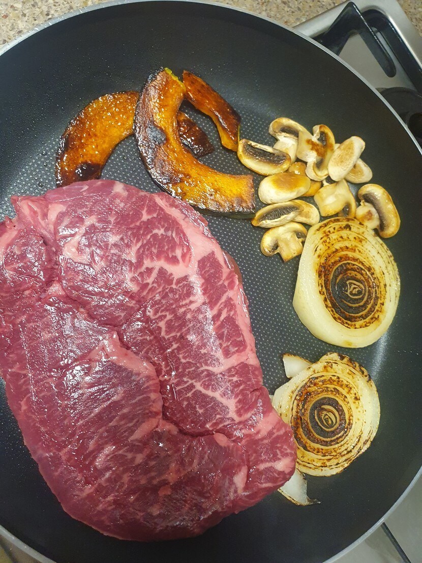 안익은 고기와 태운 양파
