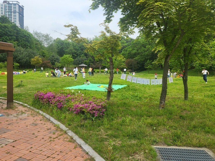 낼이 어린이날이라소 동네 유치원에서 우리집뒷공원으로 널러왔네요 ㅋㅋㅋ