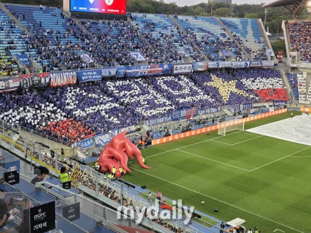 0 [마이데일리 = 수원월드컵경기장 노찬혁 기자] 양 팀 팬들이 열띤 응원을 펼치며 분위기를 띄웠다.수원 삼성 레전드 팀은 19일 오후 7시 수원월드컵경기장에서 'OGFC: THE LEGENDS ARE BACK' OGFC와 레전드 매치를 치르고 있다.킥오프 전부터 경기장 분위기는 절정에 달했다.