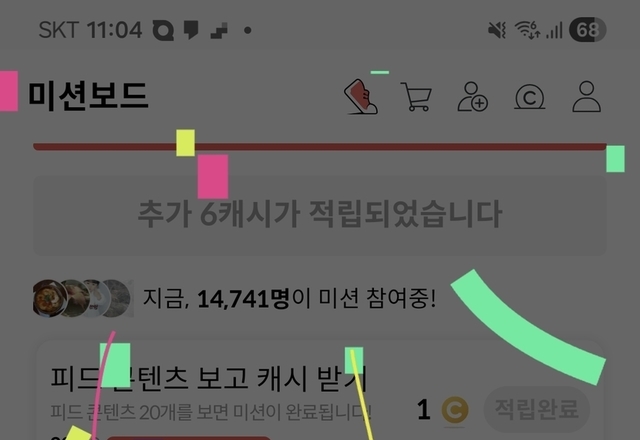 오늘의 캐시적립 미션모음 입니다..오늘 하루도 열심히 적립해서 올립니다..티끌이 태산이 되는 그날만 꿈꾸며 오늘도 미션 클리어❤❤❤