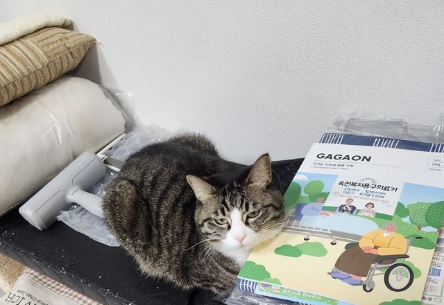 옥이가 자꾸 쇼파에 대소변 테러를 해서 깔으려 의료용품점에가서 침대방수포를 몇개 사서 놔두었더니 파랑이가 머리받침으로 사용하네요. ㅋ~귀여운것!